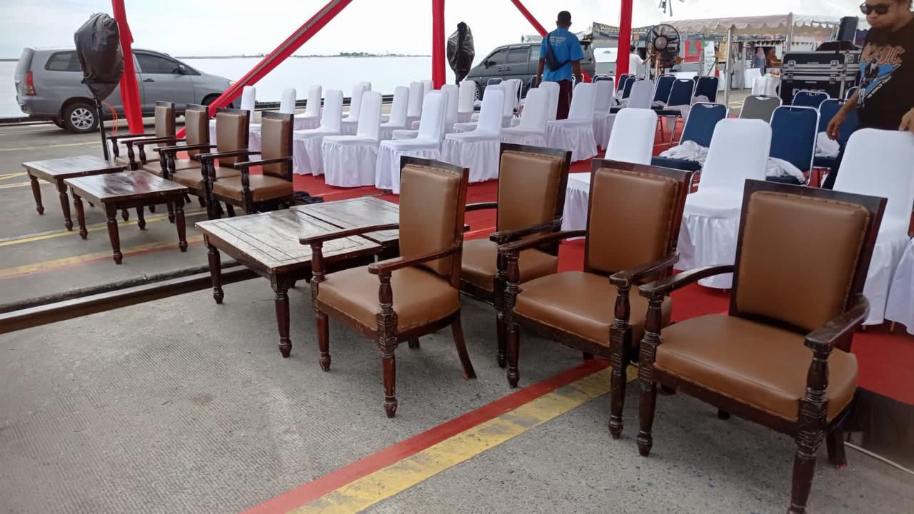 Kursi jati VIP single seater dengan dudukan dan sandaran bantalan busa kulit sintetik